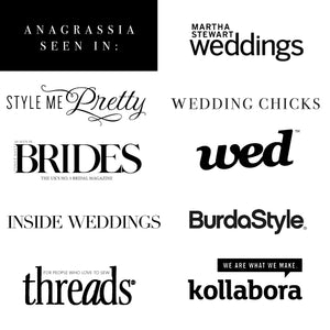 Featured in many top wedding and sewing magazines & blogs around the world. Shop the popular flower girl dress designs today! Every dress is custom and hand made in the Anagrassia Atelier.