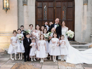 Wedding photos by the incredible wedding photographer, Ben Finch. The only thing I enjoy more than making beautiful dresses is seeing them worn, and witness the joy they clearly bring to so many! I am thrilled to share some photos of flower girls and junior bridesmaids in custom made Anagrassia dresses. It was a pleasure to work with the bride, the lucky aunt to all these flower girls and page boys! In this wedding party, the smiles are extra special because they are all part of the same family. It is a celebration of generations of commitment and the best fruits of this love. For the girls, the bride chose from three different style dresses. The youngest girls...