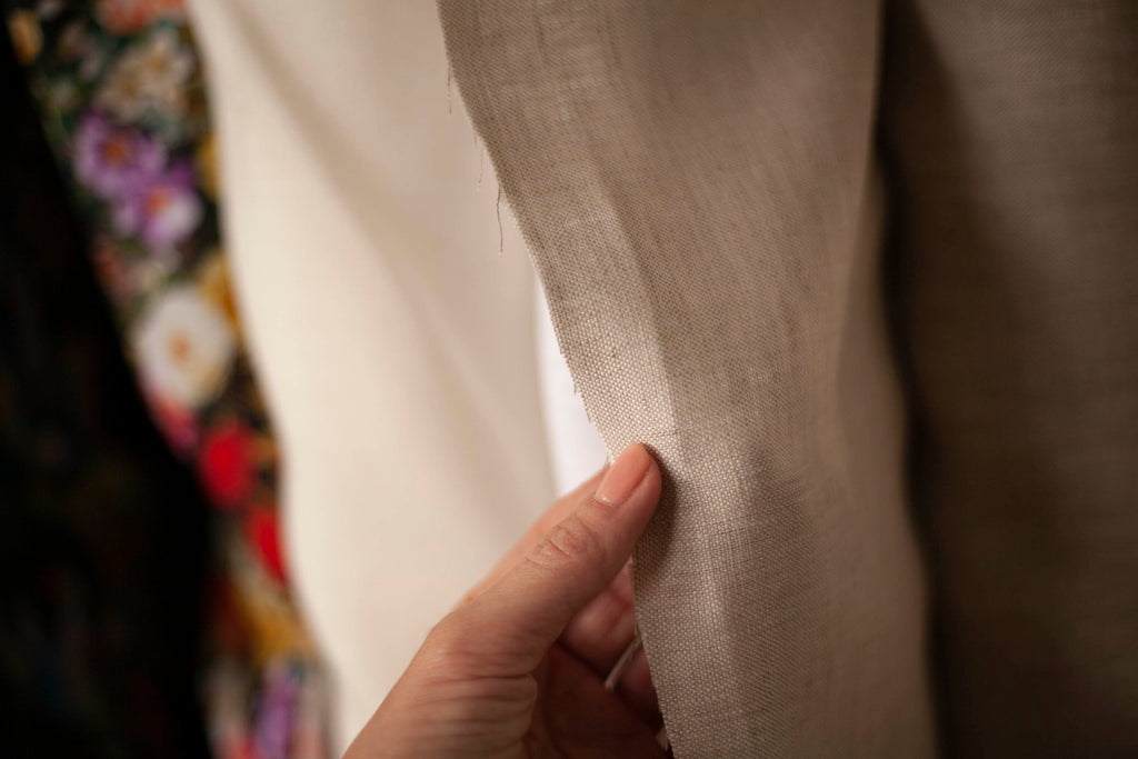A collection of fashion fabrics sold in the Anagrassia Atelier. Theses high-quality textiles are sold by the half yard and yard. Textiles may be purchased online or during an Anagrassia sewing class.
