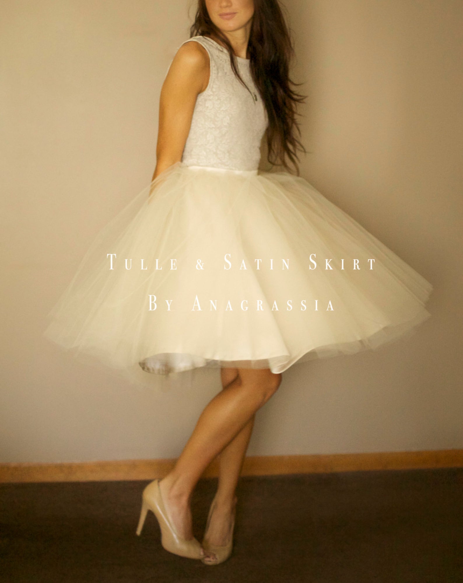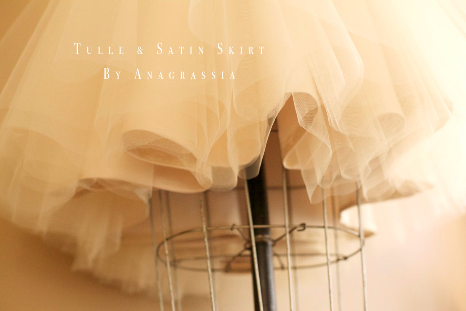 PLEASE SEND ME YOUR: waist measurement, hip measurement, length you want satin skirt layer, length you want tulle layers, and if you an ivory or champagne skirt.