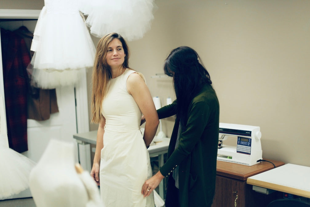 After the consultation, Mary Grace will take your measurements and begin a mock-up (muslin sample) for the first fitting.