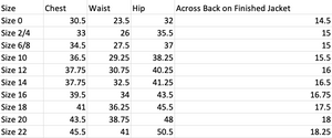See chart for standard sizing. If you are unsure of a size or need petite/tall sizing, please email Mary Grace your measurements.