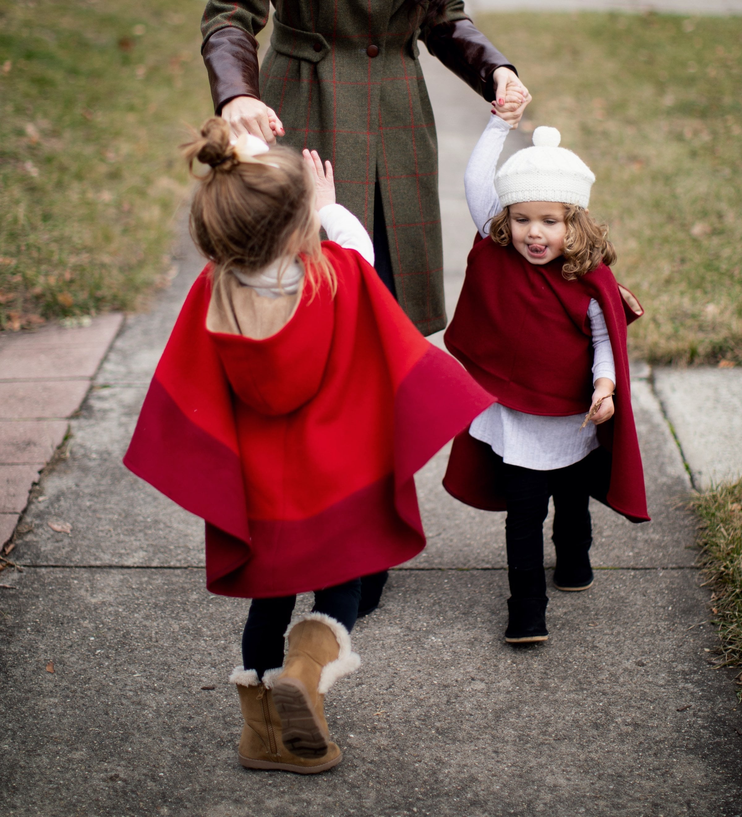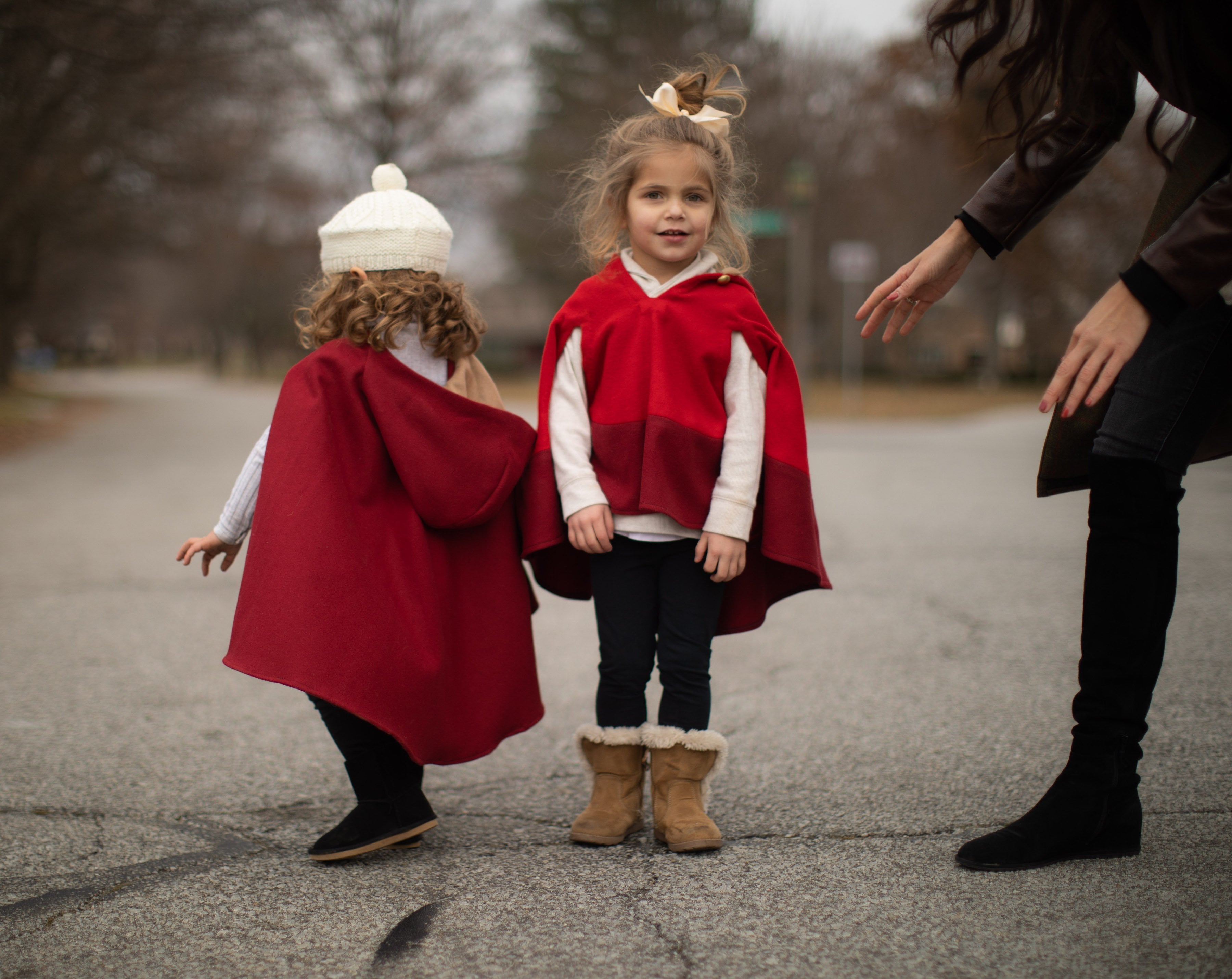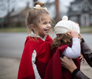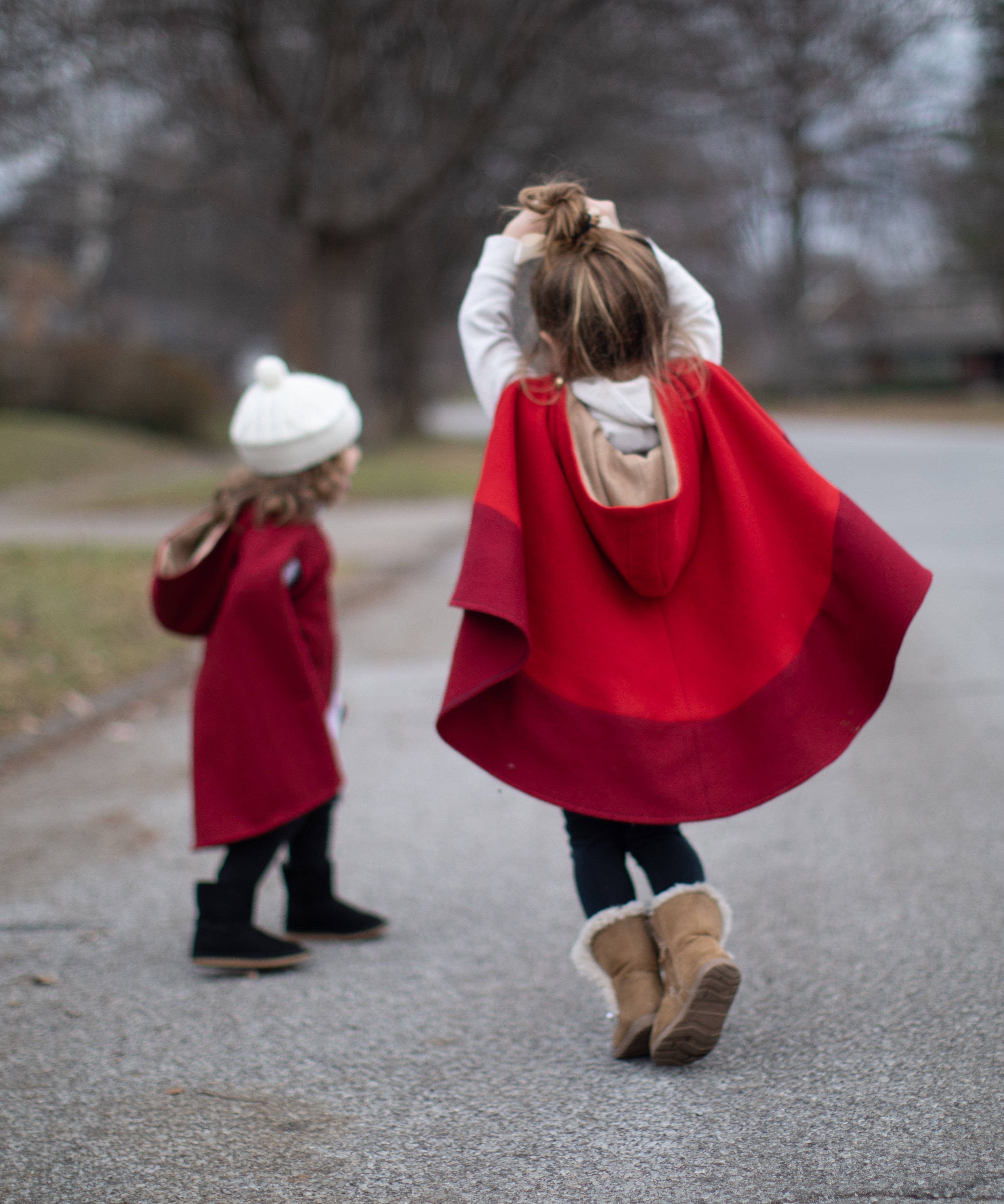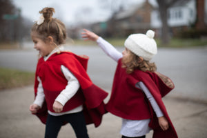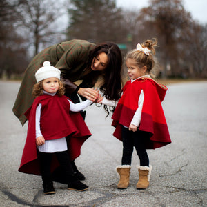 Anagrassia Contempoary Collection. The wool capes are bold, warm, fun, super cute, and easy to wear for girls and boys. The cape is handmade in the Anagrassia Atelier.