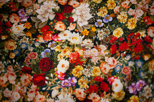 An absolutely stunning and bold floral fabric quilting fabric by Robert Kaufman. This colorful rose floral bouquet textile is called Jewel and part of the Secret Garden collection.