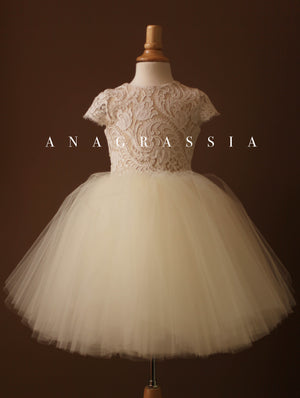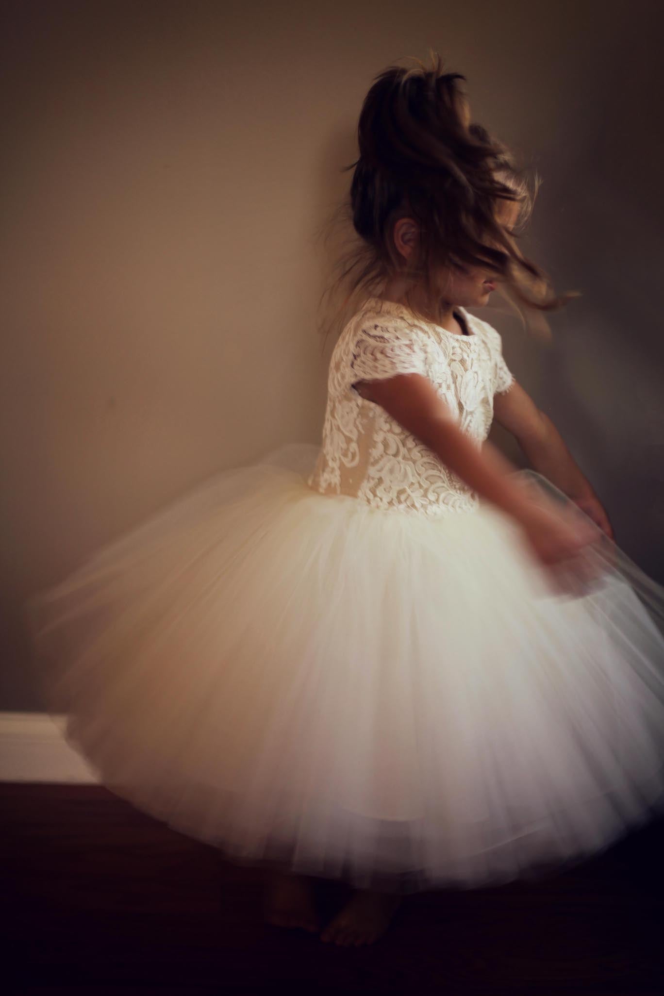 (The white tulle is a bit softer than the darker tulle colors and therefore a bit less puffy as the champagne dresses.)