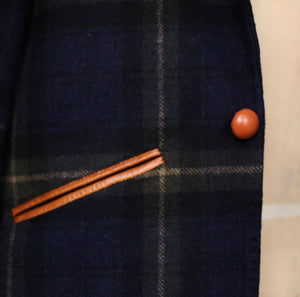 This chic and contemporary cocoon-style wool coat features a sleek, minimalistic shape, leather pockets, notch lapel collar, plaid wool, silk charmeuse lining, and real leather buttons, creating a modern design that is both simple and timeless. It will provide warmth for many years to come!