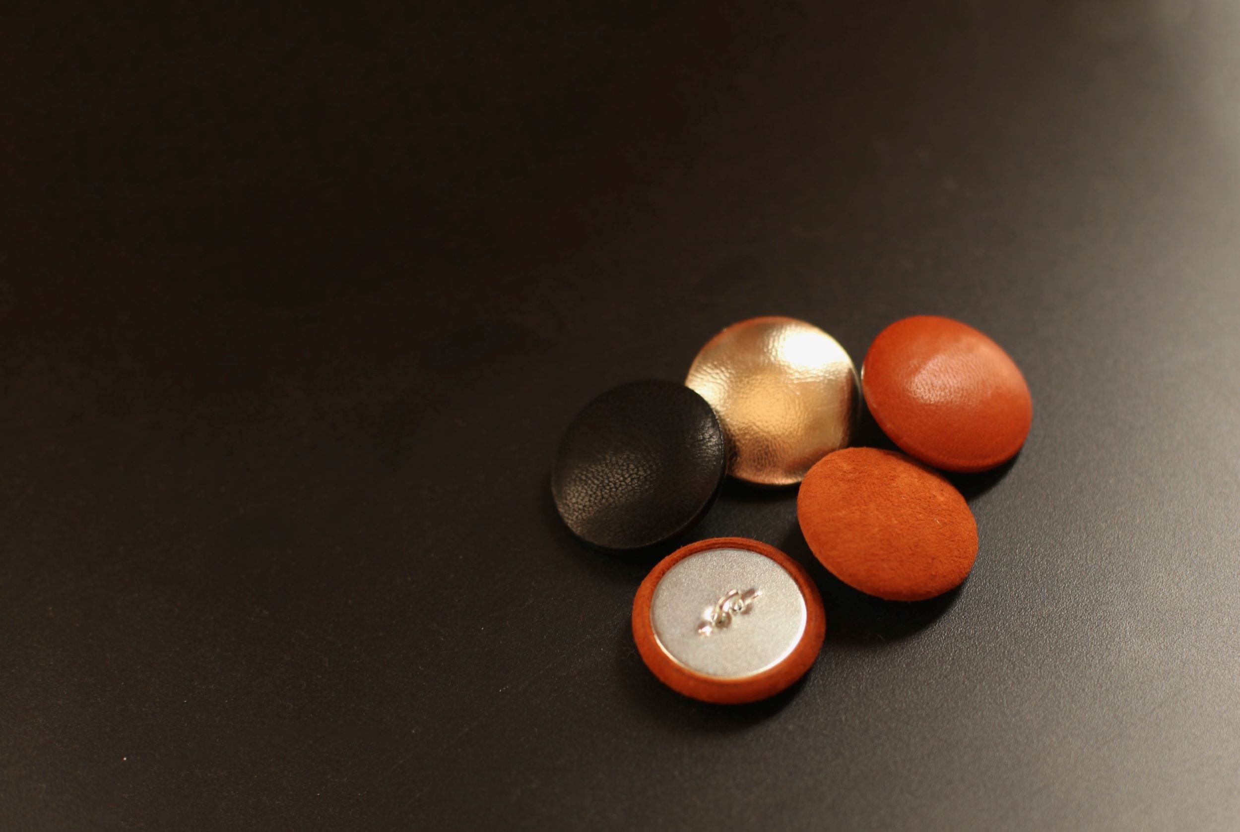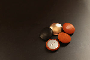 Finish your coats, capes and sports jackets with Anagrassia real leather buttons. This suede cognac leather button is rich in texture and handcrafted with a matte finish. The leather covered buttons are sold per button. Prices vary depending on the button size. If you need a size that is not listed, please contact Mary Grace. Currently the available button sizes are 5/8 inch, 7/8 inch, 1 inch, and 1 1/4 inches.