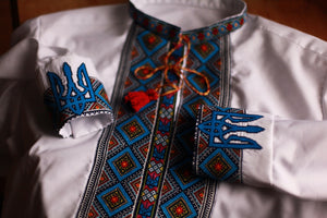 ~Wide cuffs are embroidered with big Tryzub (Ukraine's coat of arms)