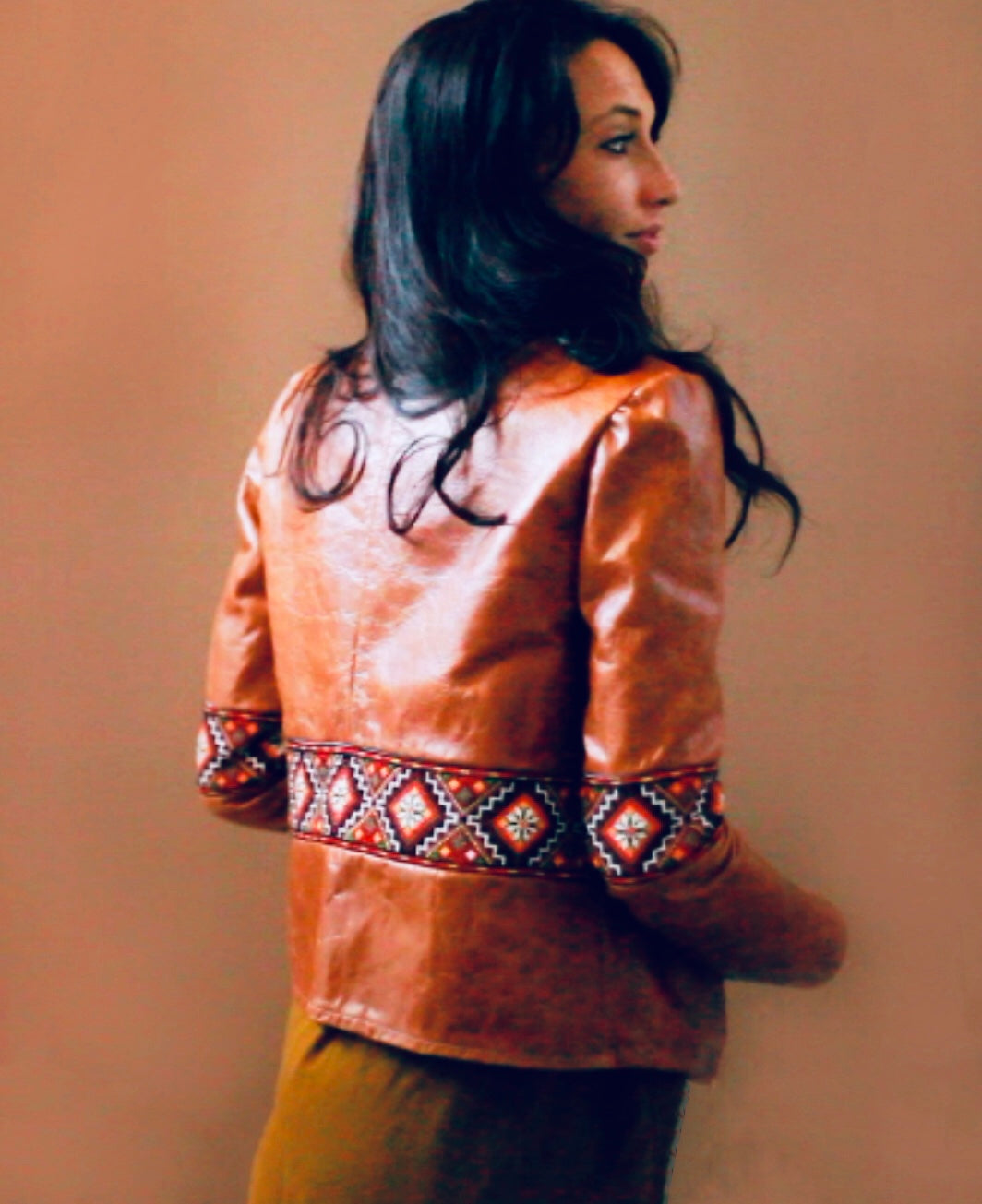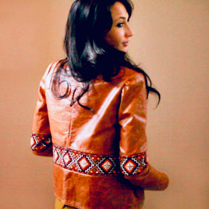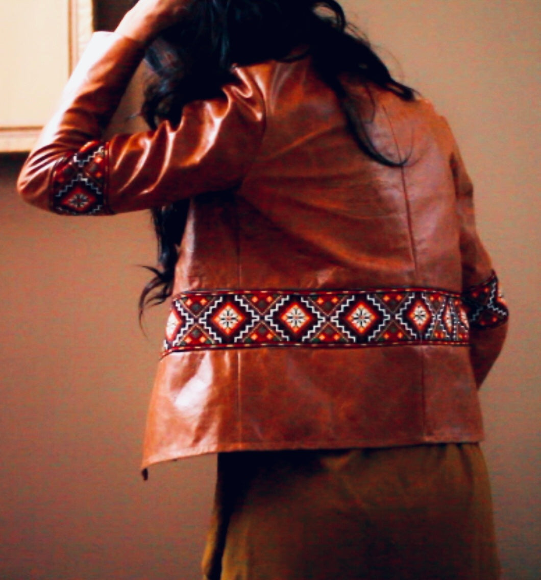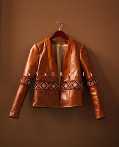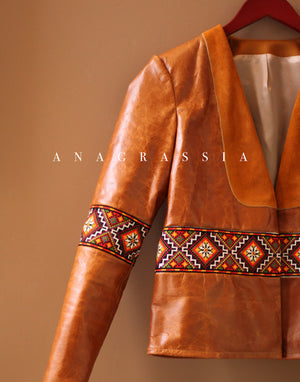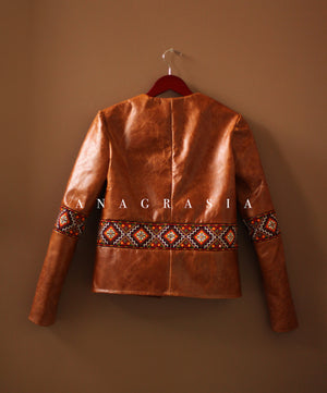 This beautiful cognac real calf leather jacket is handmade and made-to-measure.