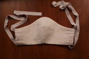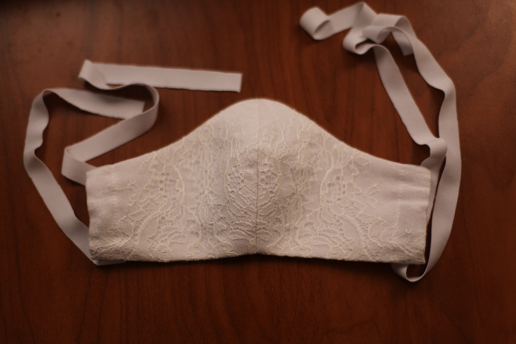 Make your little girl's First Holy Communion special with an Anagrassia face mask. The children's mask is made with white 100% silk faille and French Solstiss Chantilly lace. The mask is lined with 100% cotton and an opening for a filter. The bands are made with poly/rayon. (These ties are softer on the ears and more comfortable for kids.) There is also openings if you choose to add filters. (Filters are not included.)