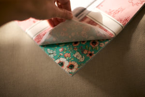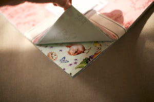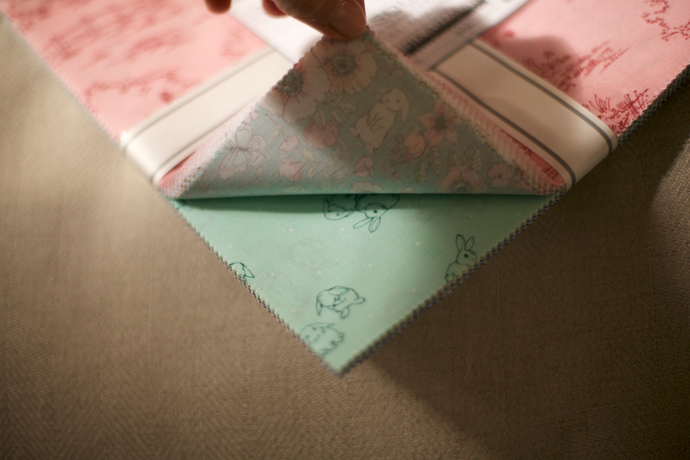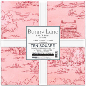 This lightweight 100% cotton by Robert Kaufman was designed by Briar Hill Designs. This Wishwell Bunny Lane fabric is precut in 10" x 10" pieces, which is great for quilting and the Sip 'n Sew Bubble Quilt class.