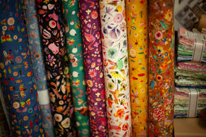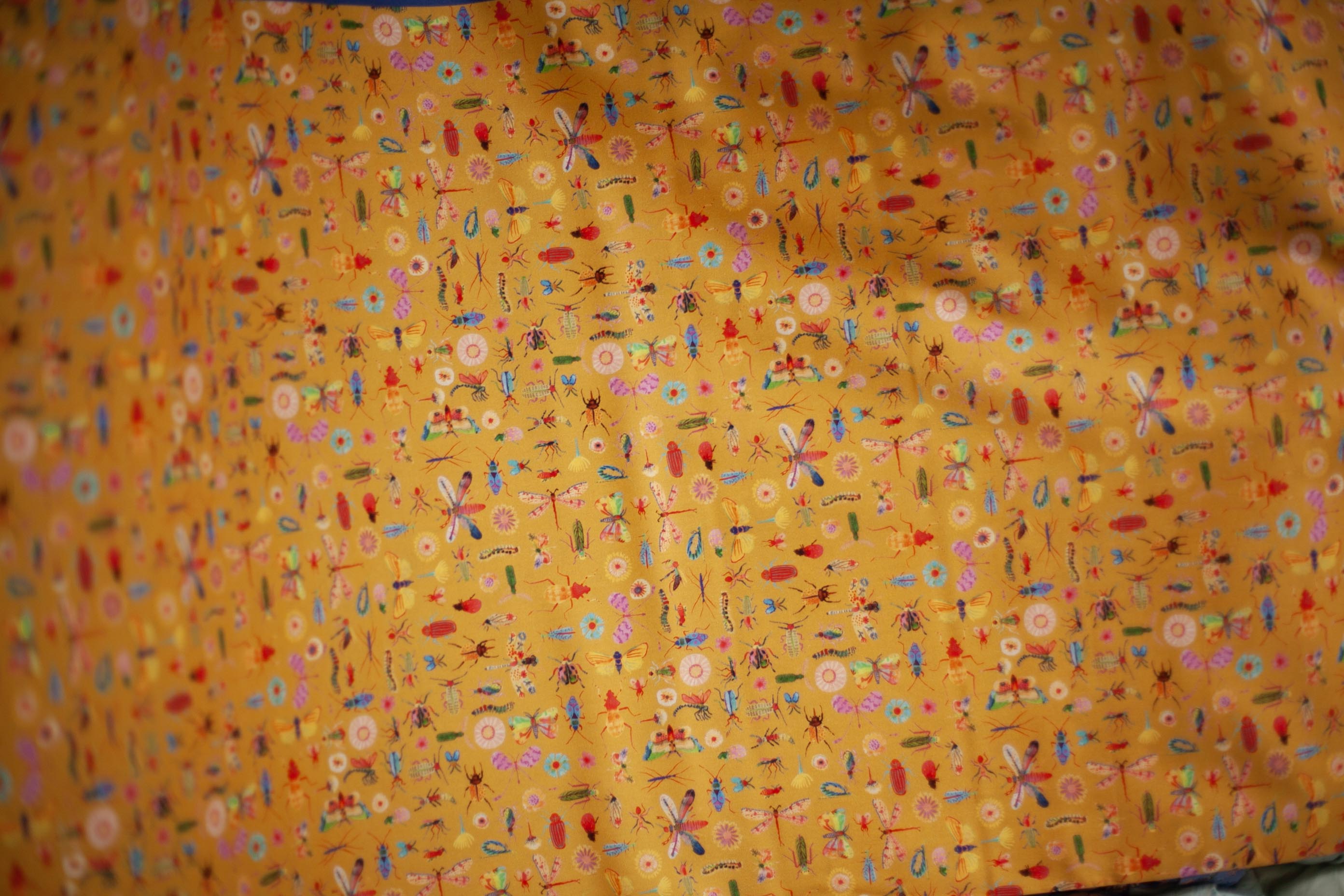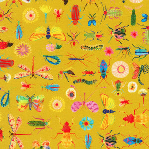 This Robert Kaufman 100% cotton quilting fabric from the Flora and Fun Collection makes any project stand out. Subhashini Narayanan's insect design on a mustard yellow background adds color and originality to quilts, apparel, tablecloths and more. This watercolor fabric encourages imaginative expression!