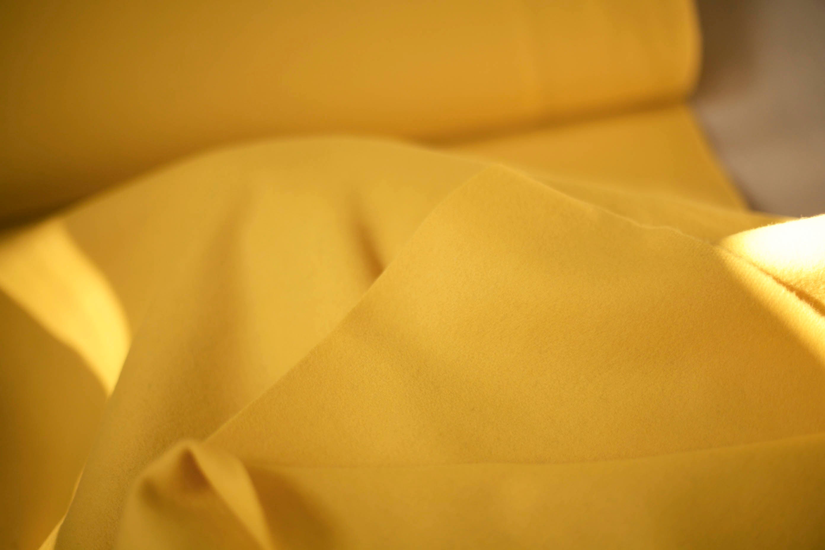 Discover the endless possibilities of Marcus Fabrics' Lanacot Collection, boasting soft and vibrant yellow wool that can be transformed into stunning capes, blazers, and winter jackets. Measuring at 44/45", this fabric offers unmatched warmth and luxury. Dry cleaning is recommended for long-lasting wear. Don't miss out on this cozy and fashionable winter essential!
